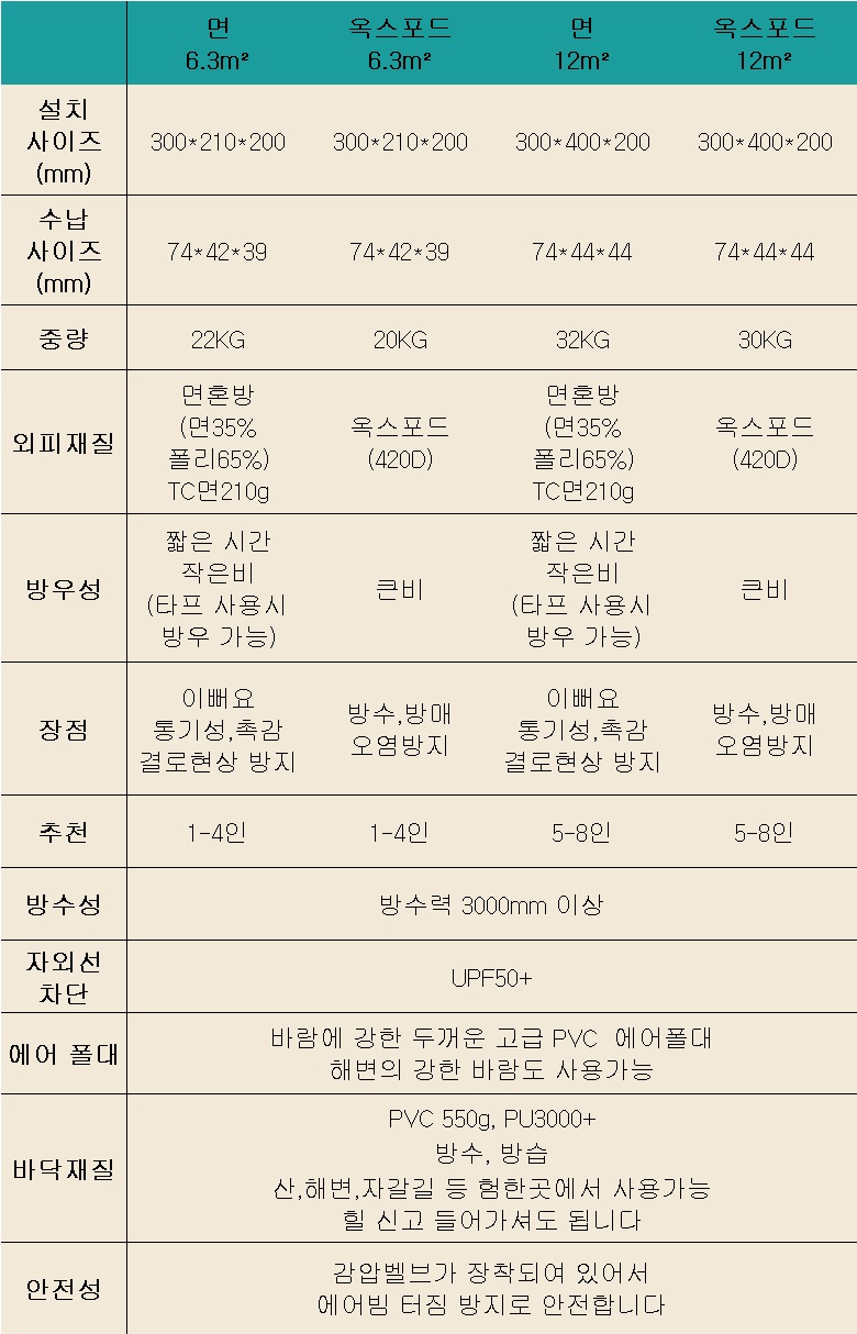 12㎡ =4mx3m (5~8인) 무게 약30키로
